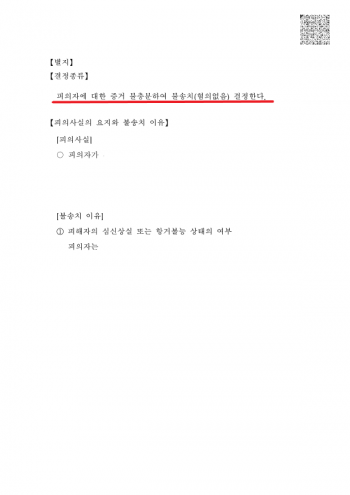○ 피의자에 대한 증거 불충분하여 불송치(혐의없음) 결정한다.