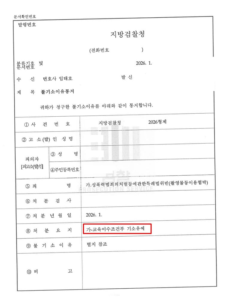 5. 그 결과 피해자가 처벌을 원하지 않는다는 의사를 밝히고 여러 사정이 참작되면서, 성폭력 재범방지 프로그램 이수를 조건으로 기소유예 처분이 내려졌습니다.