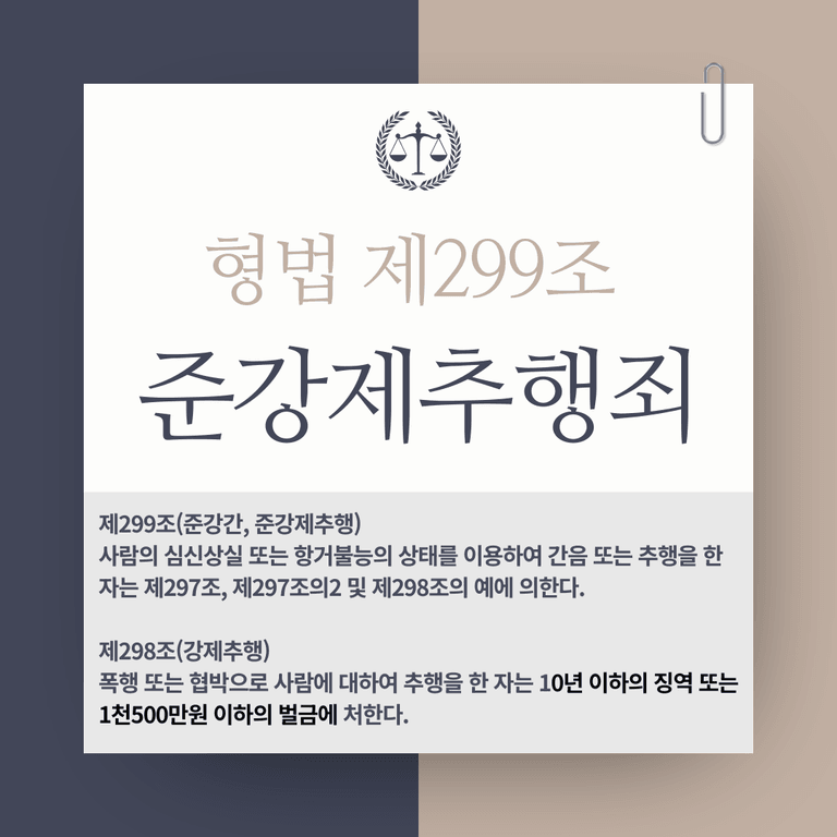 사람의 심신상실 또는 항거불능의 상태를 이용하여 간음 또는 추행을 한 자는 제297조, 제297조의2 및 제298조의 예에 의한다.