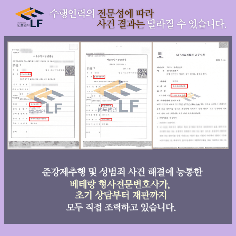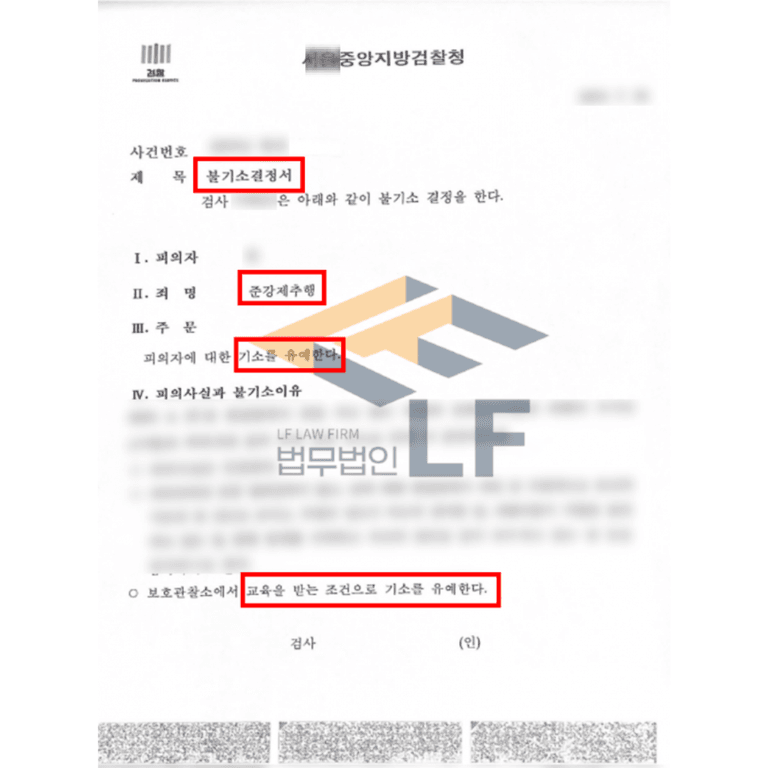 준강제추행 사건에서 기소유예 처분을 도출해 내었던 다수의 사례는 물론, 상황에 따라 경찰불송치*무혐의 처분을 도출해 내었던 전적 역시 풍부하게 보유하고 있습니다.