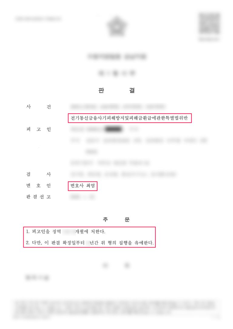 보이스피싱 사건은 최근 매우 엄격하게 처벌됩니다.