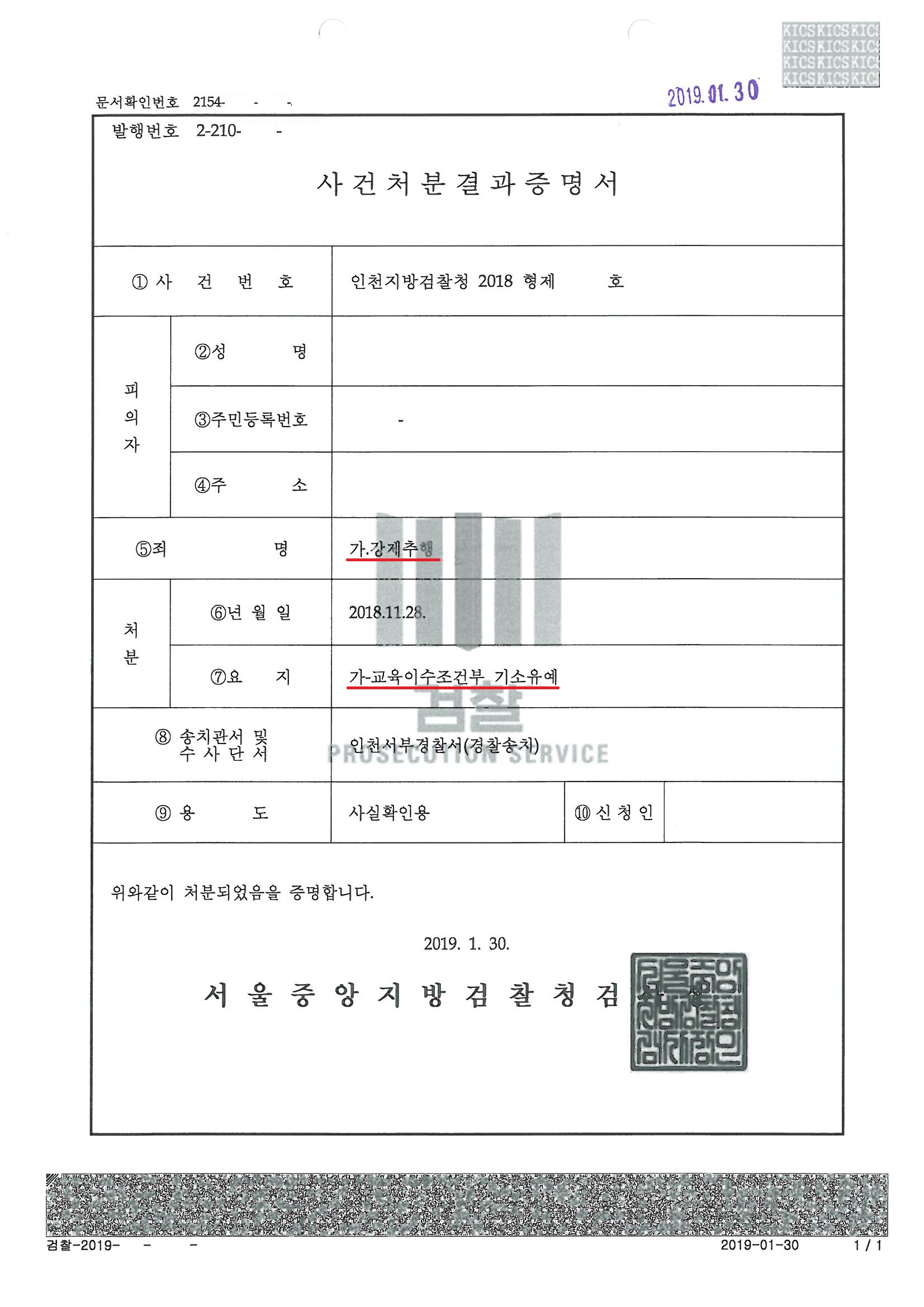 의뢰인님께서는 최근 처벌 수위가 매우 높아진 성범죄를 범하였고, 추행의 수위가 높고, 첫 경찰 조사시 무리하게 무죄 주장을 하여 죄질이 매우 좋지 않은 상황이었으므로 실형이 선고될 수 있는 매우 위험한 상황이었습니다. 그러나 앞서 말씀드린 다양한 방법으로 경찰, 검찰 수사 단계를 신중히 진행하였고 이에 서울중앙지방검찰청은 의뢰인님에게 "기소유예"처분 을 내렸습니다.