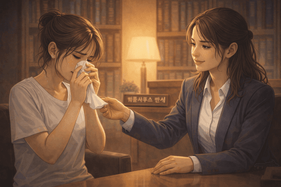 최이선 변호사는 차분하게 두 사람의 이야기를 끝까지 들었습니다. 그리고 말했습니다.
