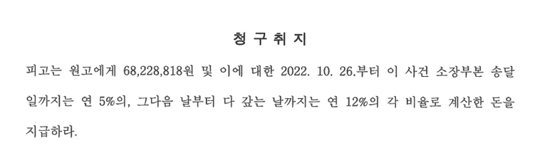 다만, 소촉법상 이자의 적용 시기만 소장부본 송달일 다음날(청구 내용)이 아닌 판결 선고일로 변경하였습니다.