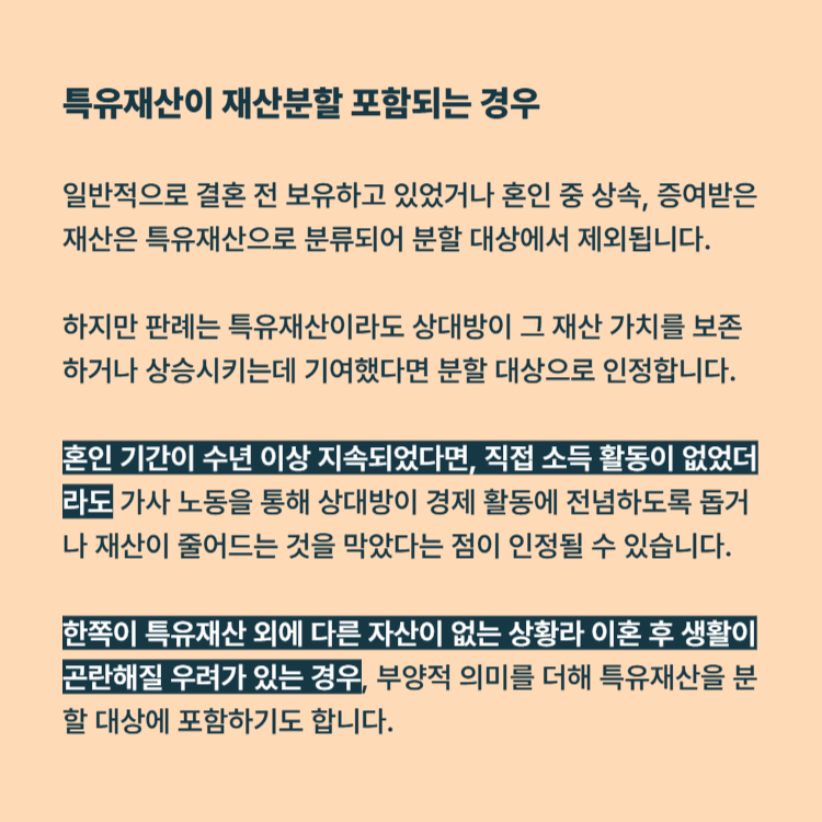 특유재산 재산분할, 포함될 수 있는 기준은?