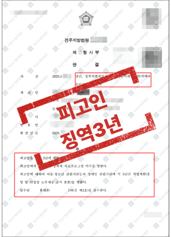 3. 결과: 가해자 징역 3년 실형 및 5년 취업제한