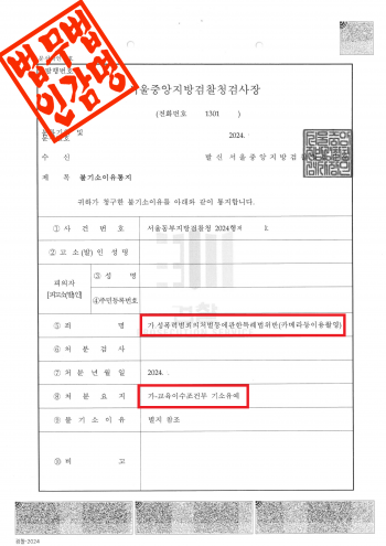 - 성폭력범죄 재범방지 교육 이수를 조건으로 기소를 유예한다.