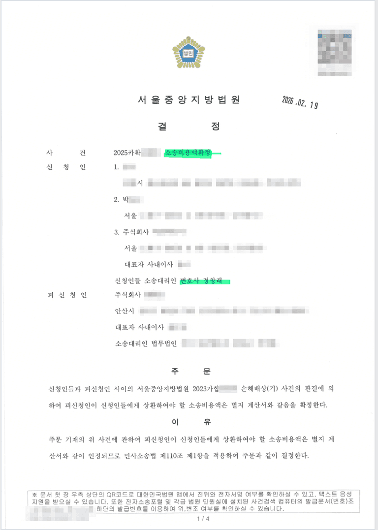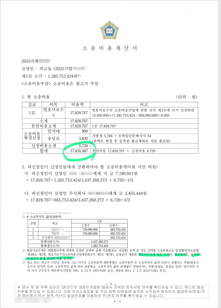 소송비용으로 1783만원을 전액 받아낸 사례