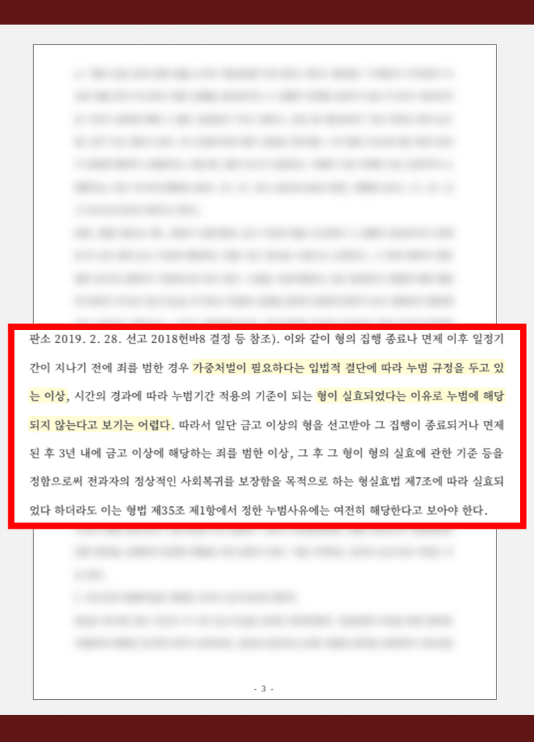 문제가 된 사건에서는 이전 징역형의 집행이 끝난 뒤 3년 이내에 다시 범죄가 발생했지만, 이후 재판 시점에서는 이미 형의 실효가 이루어진 상태였습니다.
