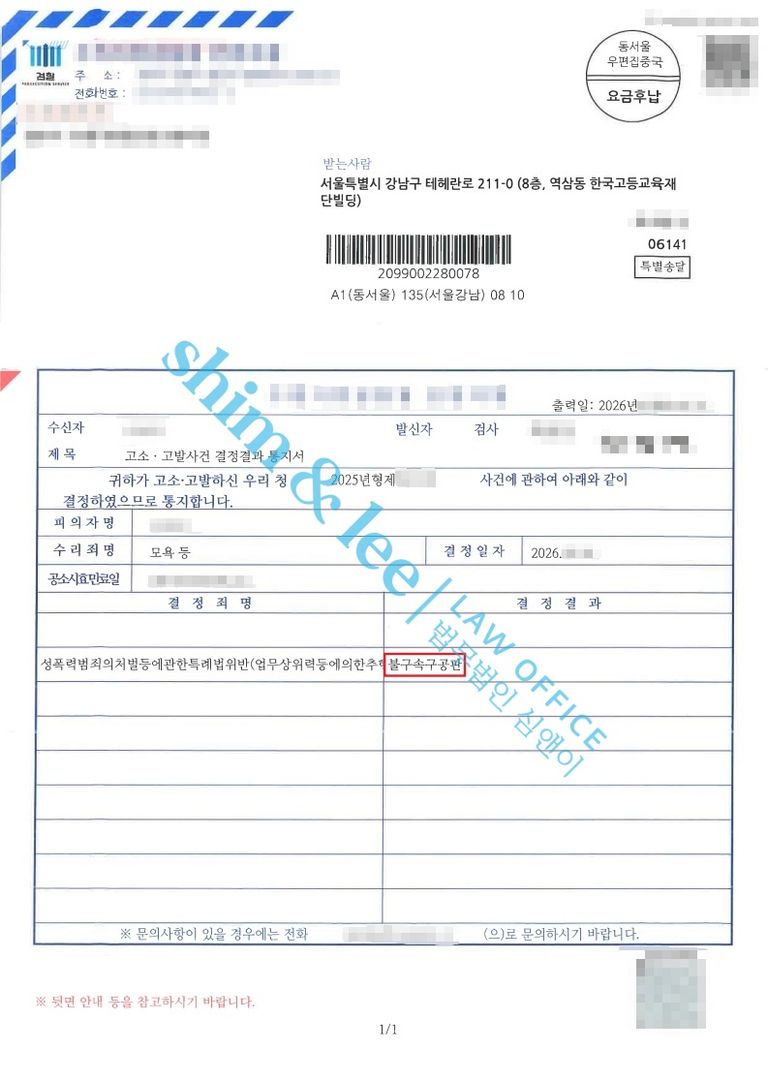 -결국 가해자는 업무상의 위치를 이용해 피해자를 추행한 사실이 인정되어 업무상위력추행 혐의로 기소되었습니다.