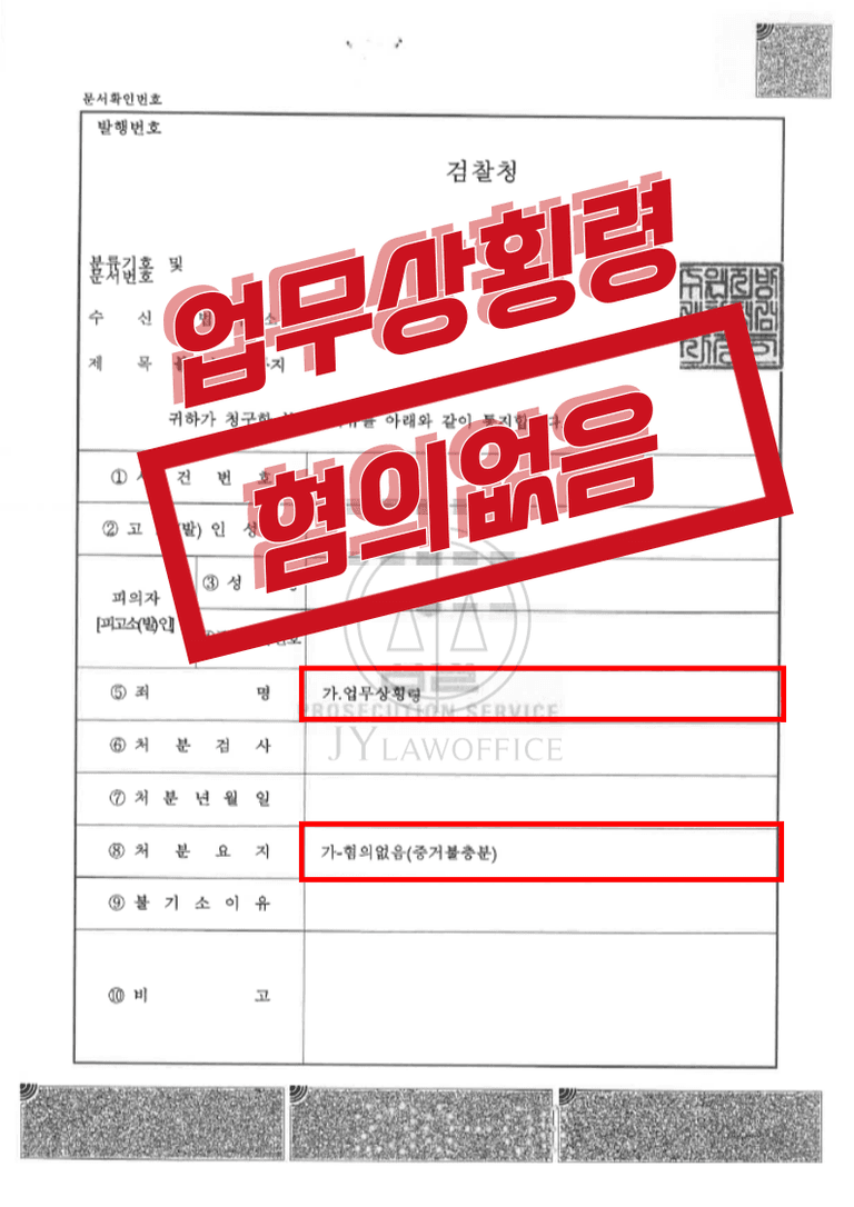 이와 같은 본 변호인의 조력에 따라, 의뢰인은 업무상횡령 혐의에서 혐의없음의 처분을 받고 무사히 사건을 종결할 수 있었습니다.