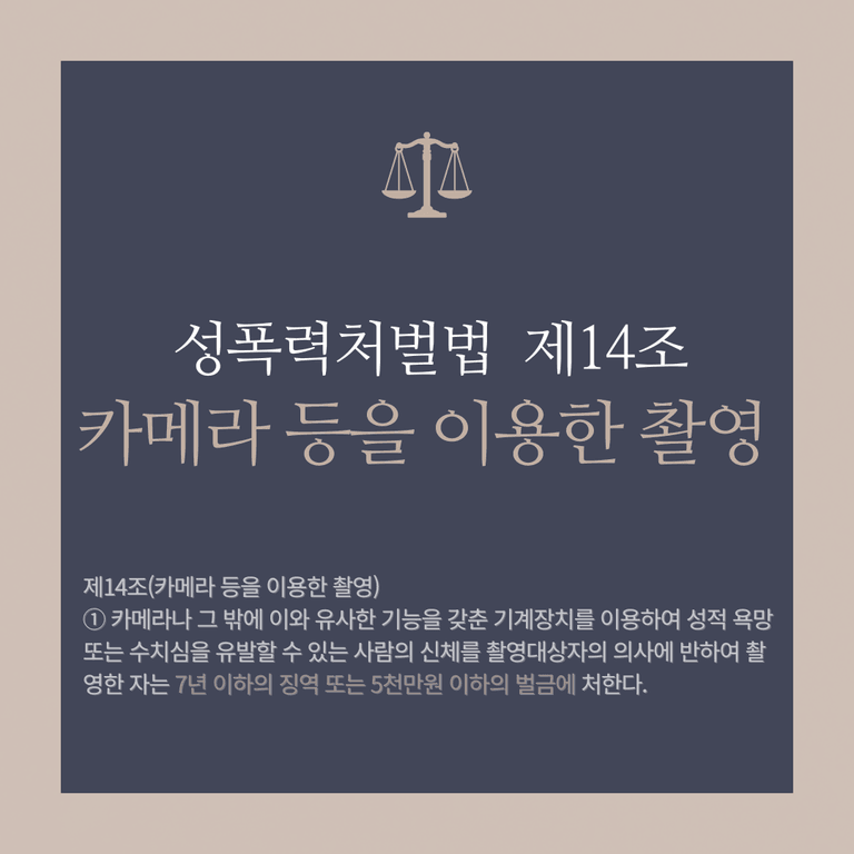 ① 카메라나 그 밖에 이와 유사한 기능을 갖춘 기계장치를 이용하여 성적 욕망 또는 수치심을 유발할 수 있는 사람의 신체를 촬영대상자의 의사에 반하여 촬영한 자는 7년 이하의 징역 또는 5천만원 이하의 벌금에 처한다.