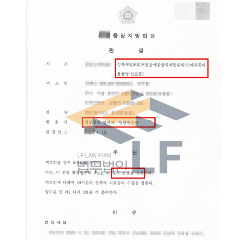 의뢰인이 사건에 위와 같이 효과적으로 대응할 수 없었다면, 계획적이고 반복적인 범행, 공공장소에서 진행한 범행이었던 것에 따라 실형을 선고받을 수도 있었을 것입니다.
