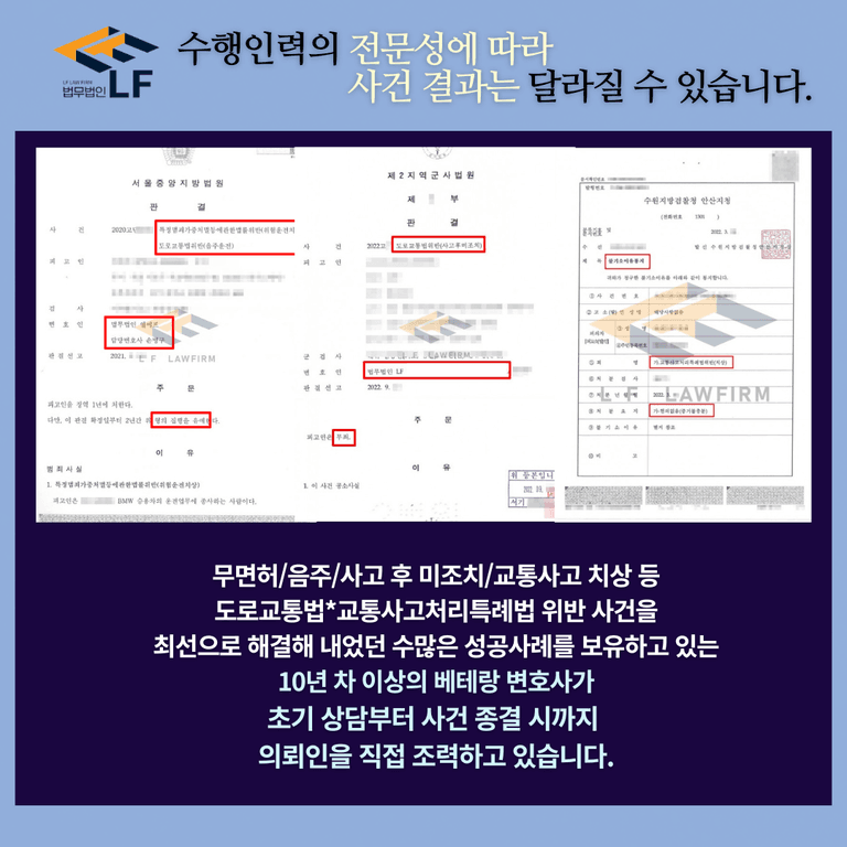 담당 변호인의 개별적인 역량 정도에 따라 사건의 진행 방향과 결과는 달라질 수 있습니다.