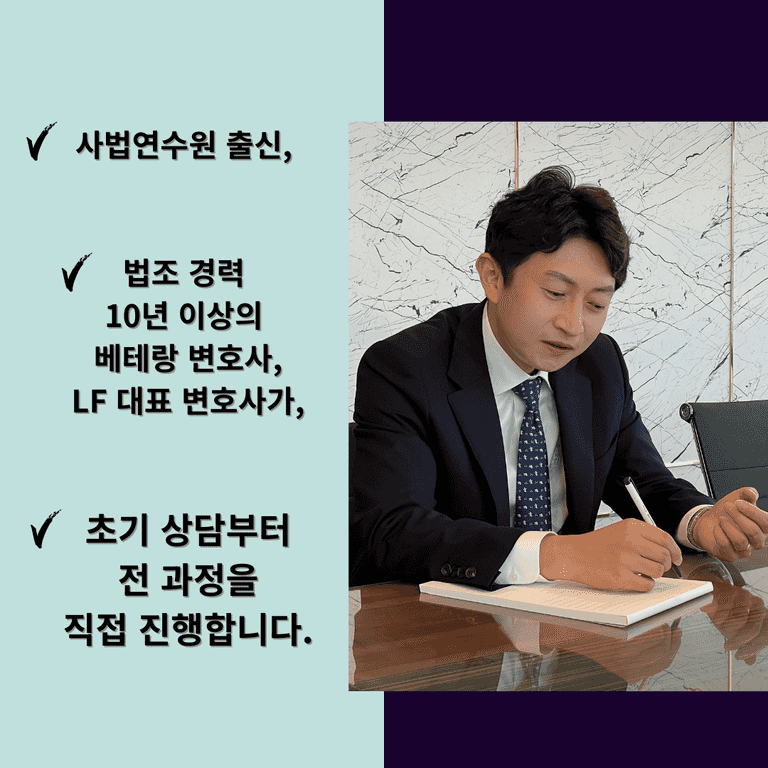 법적 전문성을 갖춘 형사전문변호사로서, 최선의 결과만을 도출하기 위해 초기 상담부터 재판까지 전 과정을 직접 진행하고 있습니다.