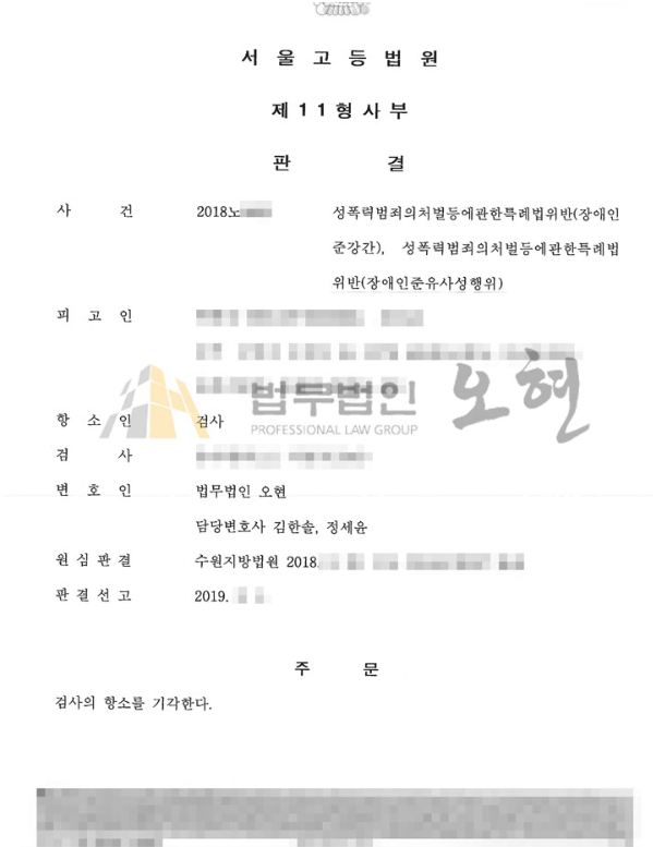본 법무법인은 '국민참여재판'을 통해 위 사건에 대해 무죄 판결 선고를 받았습니다. 그러나 검찰은 이에 항소하였으며 2심 재판이 시작되었습니다. 이에 본 변호인은 국민참여재판을 통한 무죄판결에 대한 대법원의 파례 및 검찰 주장의 부당성을 일목요연하게 정리하여 제시하였으며, 그 결과 빠르게 무죄판결을 확정 지을 수 있었습니다.
