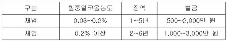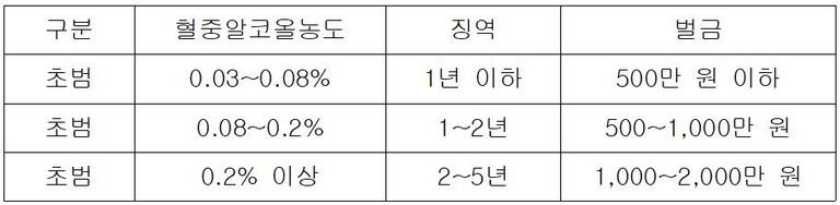 혈중알코올농도별 형사처벌 기준
