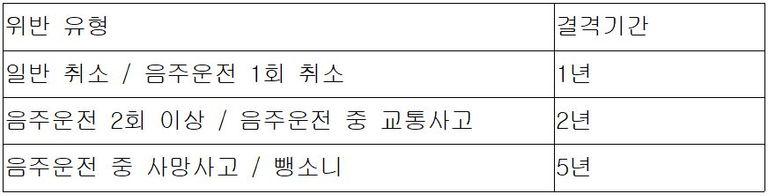 면허 취소 및 결격기간 정리