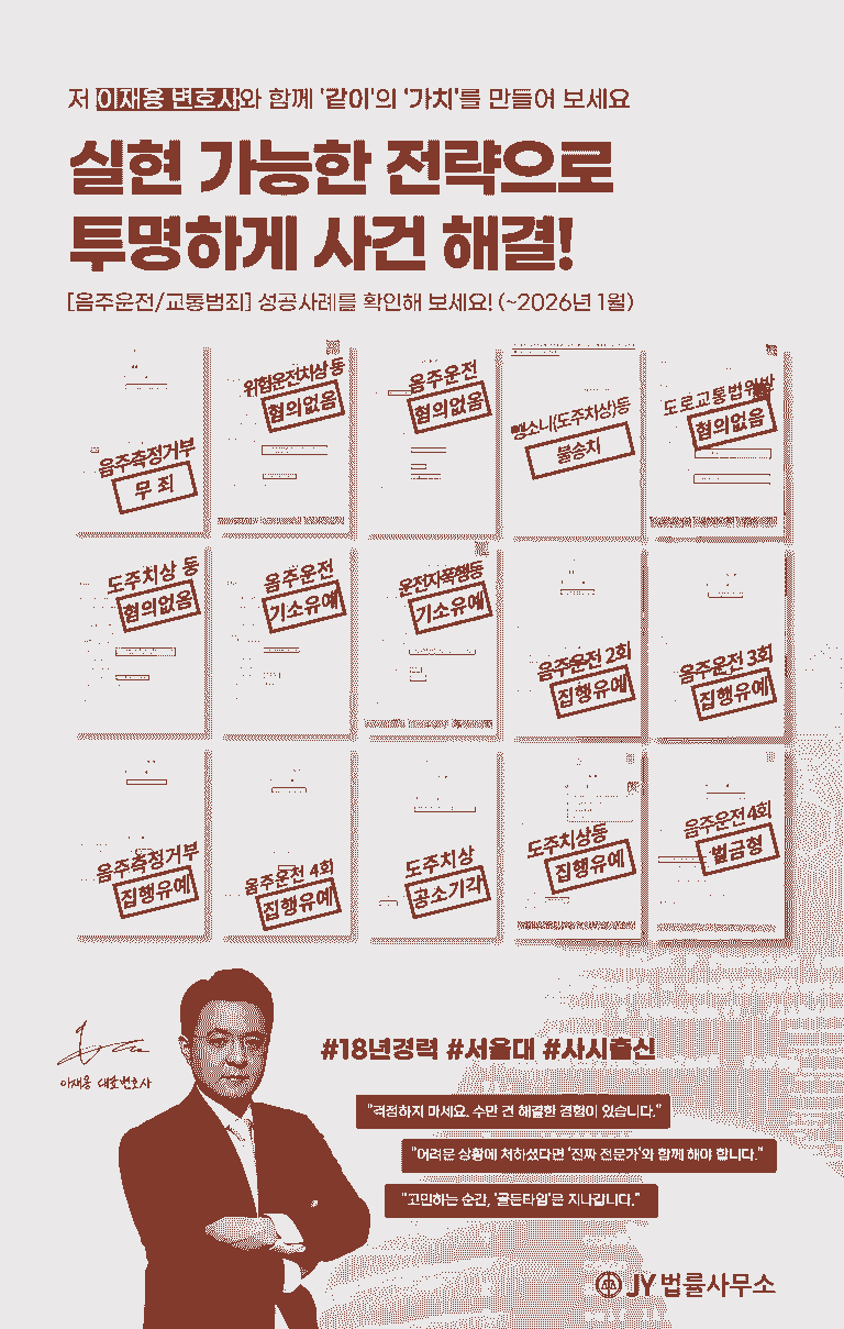 이에 '교통사고처리특례법위반(치상)'혐의를 받게 된 의뢰인은 이후 상황에 대해 자문하고자 본 JY법률사무소를 찾아주셨습니다.