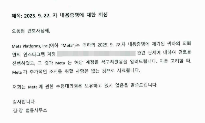 그 결과 인스타그램 측에서 즉각적인 반응이 왔으며 정지 처리가 해제되었던 사례입니다.