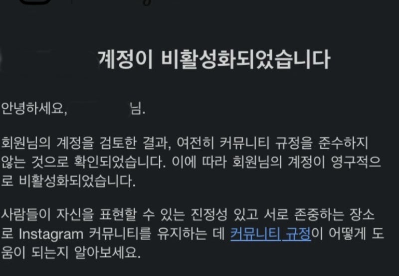 그러나 인스타그램 측에서는 이의신청에 대해 거절했을 텐데요.