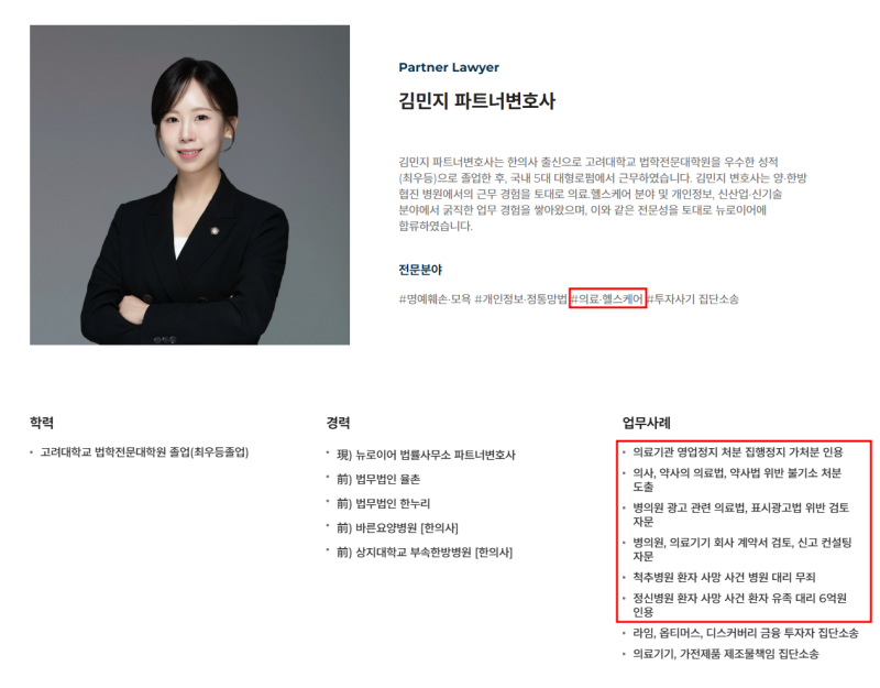 뉴로이어 법률사무소 한의사출신 김민지변호사입니다.
