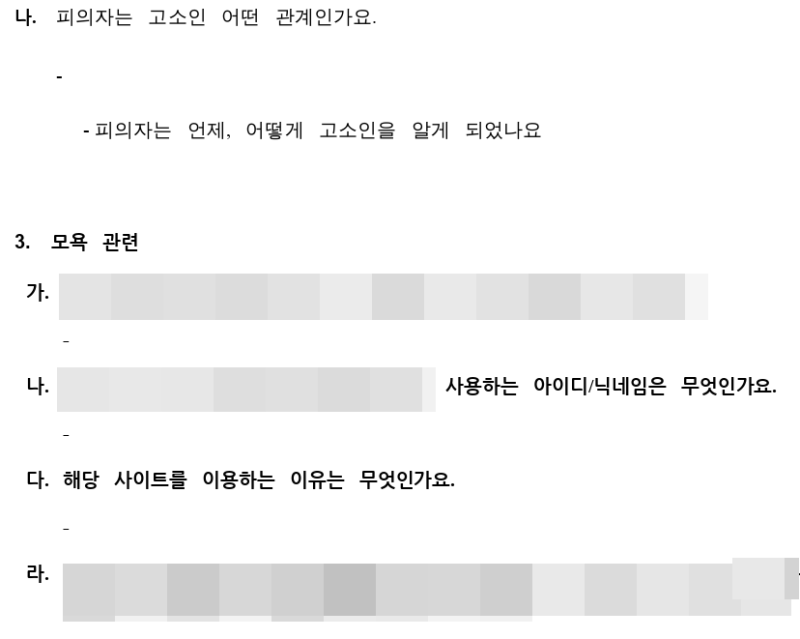 저희가 직접 준비한 경찰조사 질문지 중 일부분