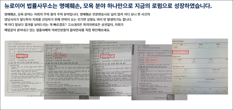 뉴로이어 법률사무소 명예훼손 모욕팀