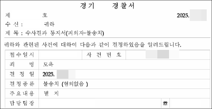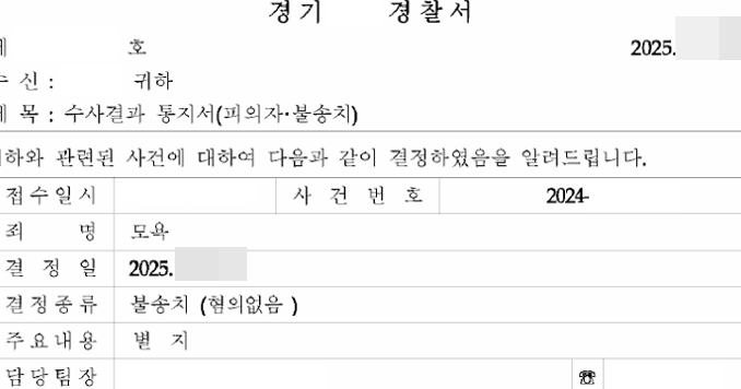 저희는 치밀한 법리 분석과 체계적인 주장을 통해, 해당 사건에서 의뢰인에 대한 모욕 혐의에 대해 경찰로부터 불송치 결정, 즉 무혐의 처분을 이끌어낼 수 있었습니다.