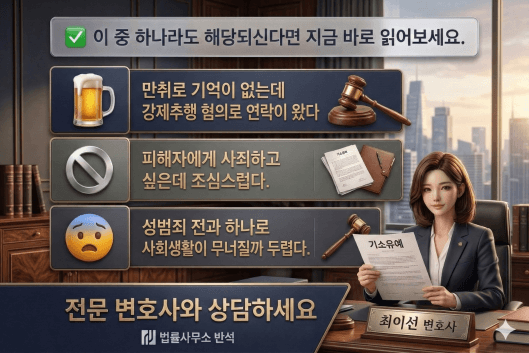 ![술마시고 실수, 처벌 피할 수 있나요?[강제추행 기소유예 성공]](/_next/image?url=https%3A%2F%2Fd2ai3ajp99ywjy.cloudfront.net%2Fuploads%2Ftitleimage%2Foriginal%2F5ce986b9ca126d2dc36f7282-original.jpg&w=3840&q=75)