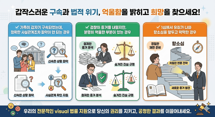 형사사건은 초기 대응이 모든 것을 좌우합니다. 특히 구속 상황이라면, 항소심을 앞두고 있다면, 지금 이 순간이 가장 중요한 시점입니다.