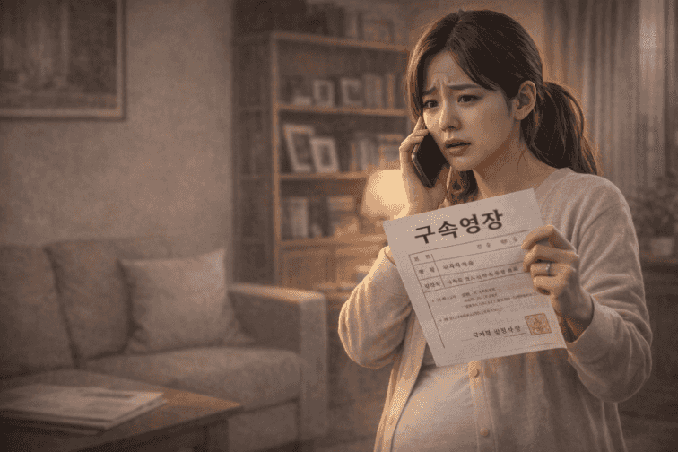 들어선 것은 만삭의 아내였습니다. 고개는 숙여져 있었고, 어깨는 떨리고 있었습니다. 옆에는 상황을 이해하지 못하는 어린아이가 불안한 듯 엄마 손을 꼭 잡고 있었습니다.