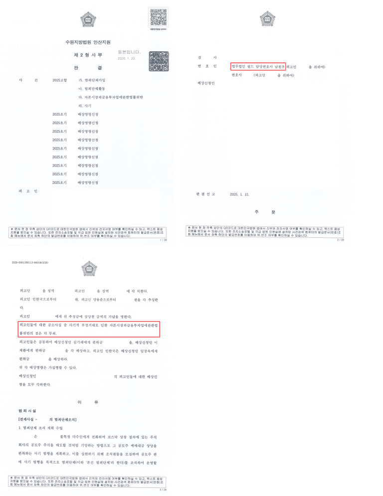 특히 같은 사건으로 기소된 공범들은 자본시장법위반 혐의를 모두 인정한 상황이었습니다. 공범 전원이 혐의를 인정하는 흐름 속에서 의뢰인 측만 홀로 무죄를 주장하는 것은 부담이 될 수 있었지만, 저는 이 혐의가 법리적으로 성립할 수 없다고 판단했습니다.