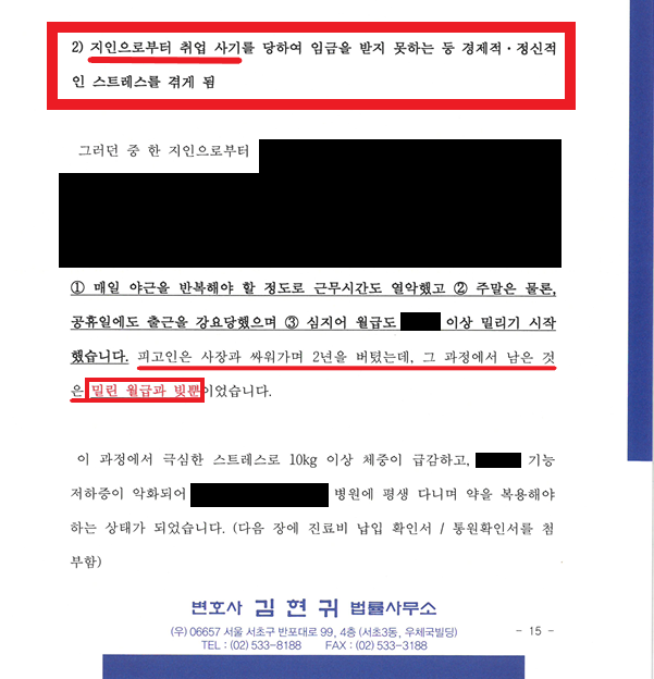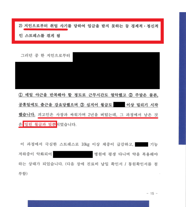 - 남편 A는 취업 사기로 인한 임금 체불과 건강 악화로 육체적·경제적 한계에 달한 상태였음