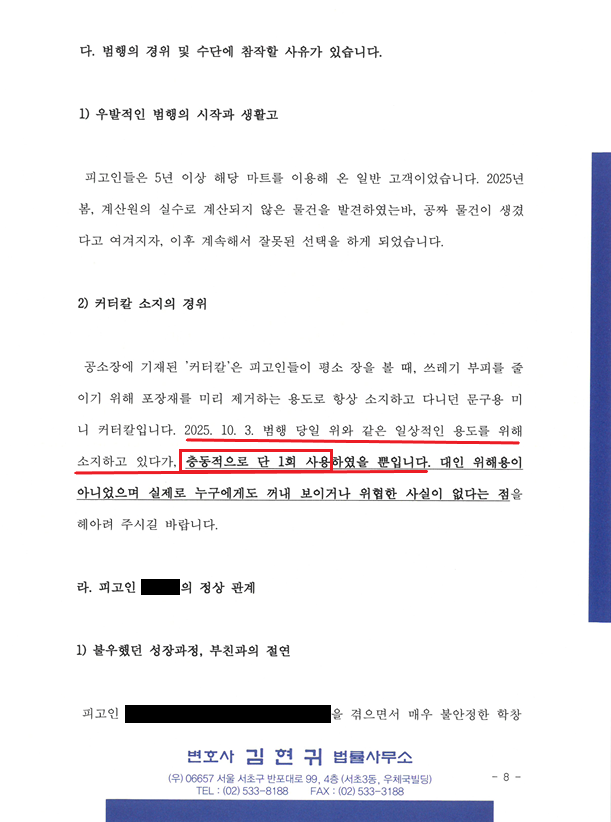 이 사건 이전까지 제가 이마트 절도 사건을 수십번 대리하였을 때 모두 합의가 되었습니다.)ㅡ그런데 이마트 측은 2025년 6월부터는 "아예 합의해주지 않고, 기껏해야 결제 정도는 받아주는 방향"으로 사내 규칙이 바뀌었습니다.