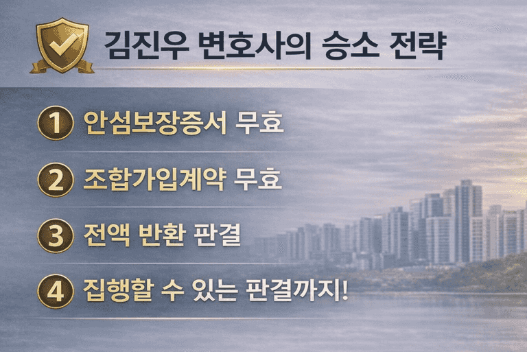 단순히 시행사만을 상대로 소송을 진행해서는 안 됩니다. 내 돈을 실제로 보관하고 있는 신탁사에 대한 청구까지 함께 진행해야만 실질적인 현금 회수가 가능합니다.