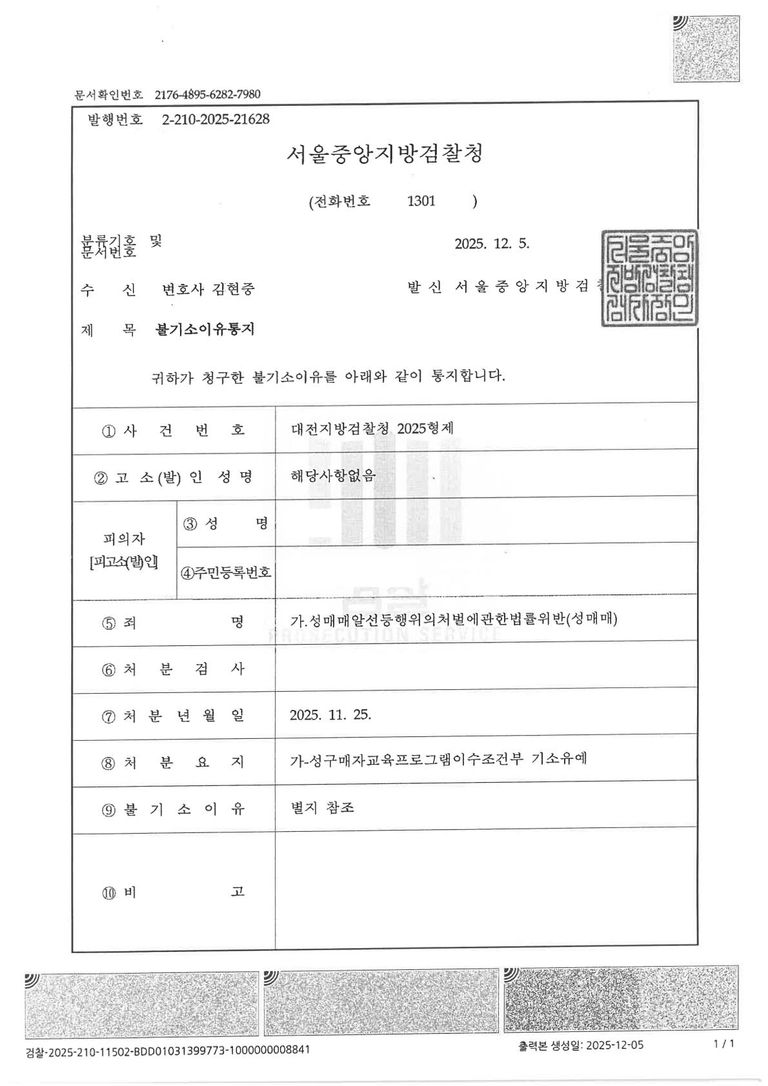 경찰은 최종적으로 미성년자 성매수 혐의에 대하여는 혐의가 없다는 무혐의 판단을 하게 되었고,