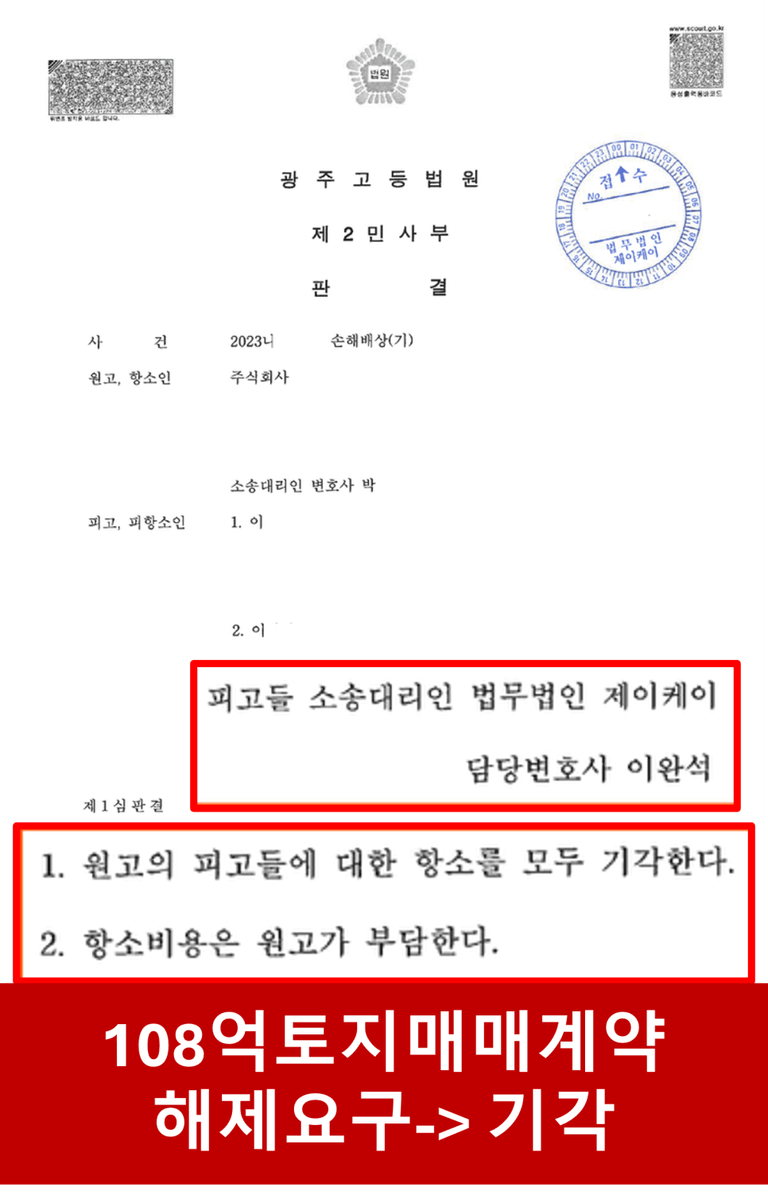 이완석 변호사의 108억 원 토지매매계약 분쟁 전부 승소 사례