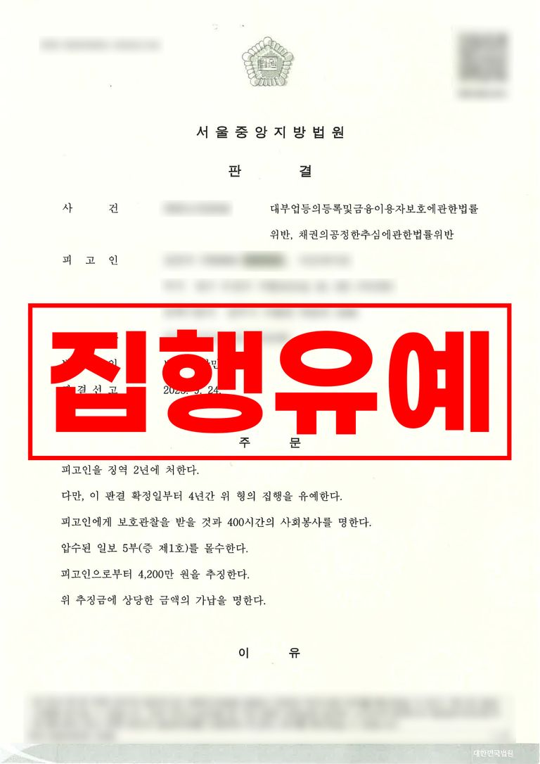 재판부는 의뢰인의 반성, 피해자들과의 합의, 나머지 피해 회복 노력 등을 종합적으로 고려해 징역형을 선고하되, 그 집행을 유예(집행유예)하는 판결을 내렸습니다.