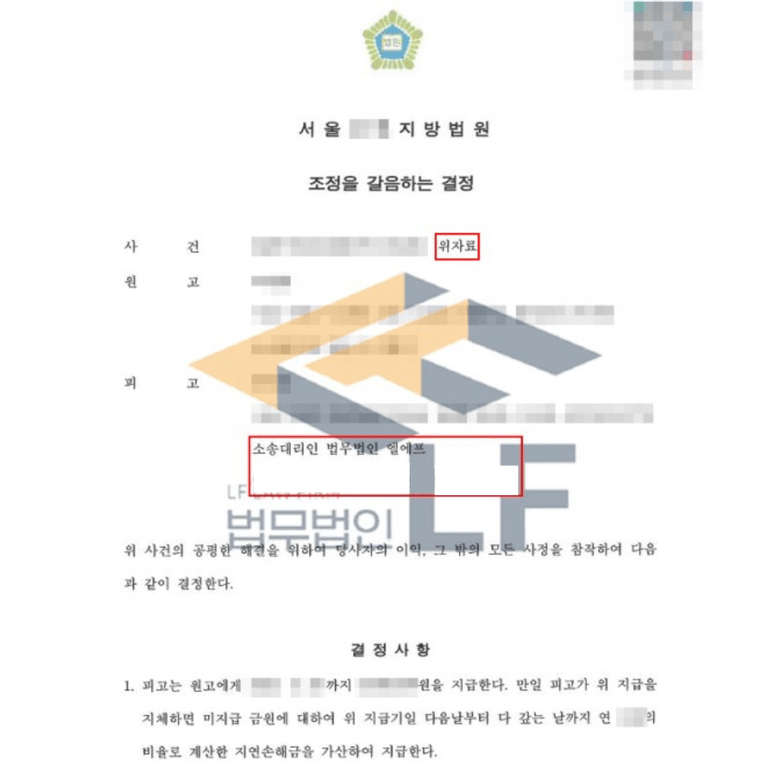 법원은 피해자가 제출한 증거만으로 의뢰인의 과실이나 설명의무 위반을 인정하기 어렵고, 피해자의 부작용이 경미하여 체질적 요인일 가능성이 높다고 판단하였으며, 그에 따라 의뢰인에 피해자가 청구한 위자료 일부만을 지급하고, 피해자는 나머지 청구를 모두 포기하는 조정을 갈음하는 결정을 내렸습니다.