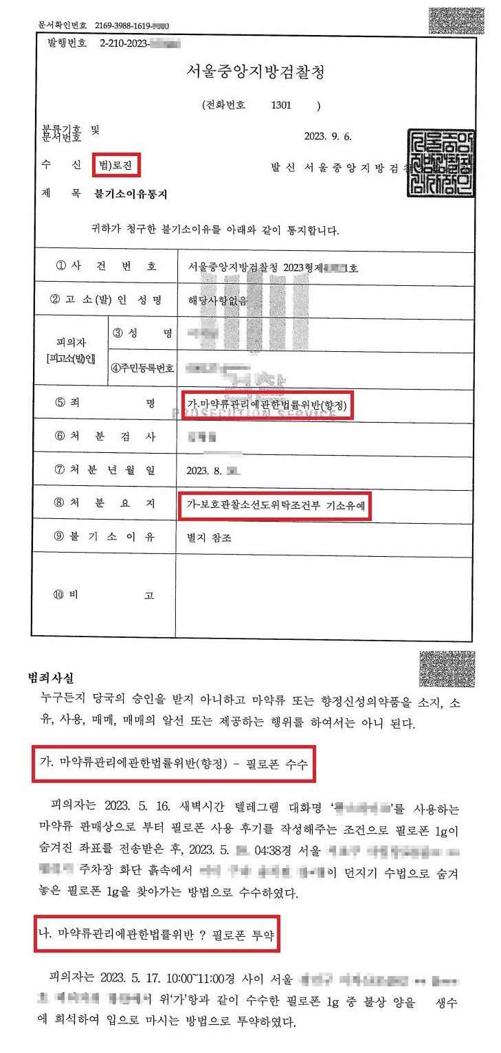 이번 포스팅은 로진의 형사전담팀이 담당했던 사건 중 마약법위반(향정) 필로폰 투약이 선도조건부 기소유예가 나온 사건입니다.