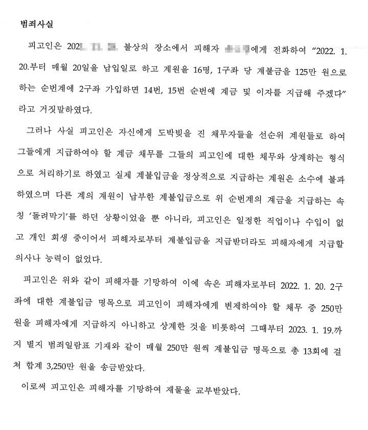 [성공사례] 곗돈 사기 고소대리, 이의신청 성공 - 피고인 유죄