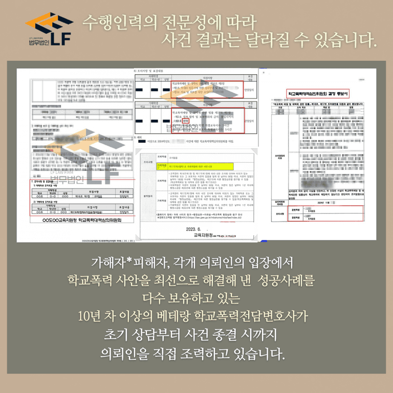 본 사례와 같이 피해 학생의 입장에서, 또한 가해 학생의 상황에서, 최선의 결과를 이끌어 내었던 성공 사례 역시 다수 보유하고 있습니다.