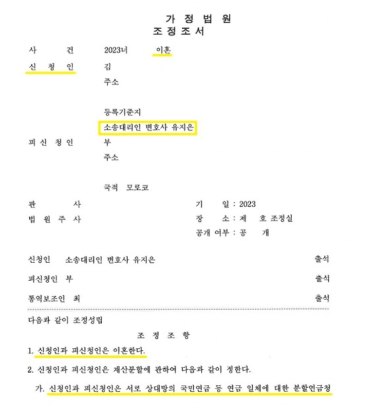 실제로 법률사무소 카라에서 진행한 사건에서도 한국인 아내와 모로코 국적 남편이 약 10년 이상 혼인생활을 유지한 뒤 이혼을 진행하면서 재산분할과 연금분할 문제가 핵심 쟁점이 되었습니다.