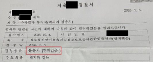 정보통신망법위반 / 명예훼손 불송치 성공사례