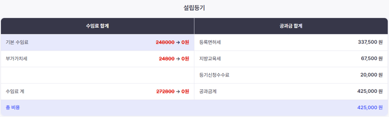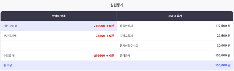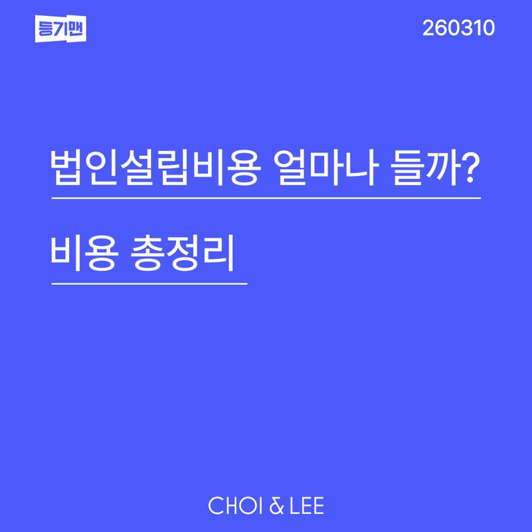 법인설립 준비하는 분들에게 가장 큰 관심사는 아마 “비용”일 것입니다. 법인설립 비용은 크게 “변호사 수임료 + 공과금 + 부대비용” 이렇게 3가지는 구분됩니다. 수임료와 부대비용은 변호사, 법무사 마다 다르지만(저희 최앤리의 등기맨에서는 무료 진행), 공과금은 사무소마다 달라지면 안 됩니다. 다른 사무소와 공과금이 다르다면 의심해야 합니다.