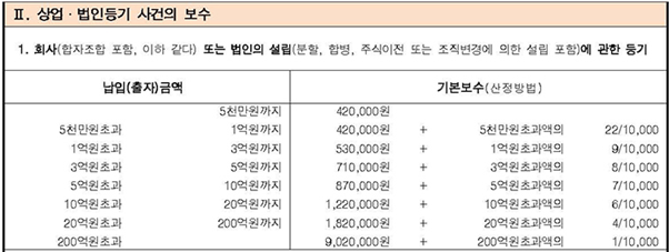 실제로 여러분들이 사무소에 문의해보면 위 법무사 보수표의 금액보다 낮은 경우가 많을 겁니다. 법무사 보수표 기준 금액을 일종의 상한이라고 생각하셔도 좋습니다. 어떤 특별한 이유가 있어 대형로펌에 법인설립을 의뢰하는 것이 아니라면 대체로 법인설립 수임료는 30만원 전후가 가장 많을 것입니다.