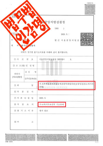 서울중앙지방검찰청은 이 사건에 대해 다음과 같은 사유로 불기소 결정을 하였습니다.