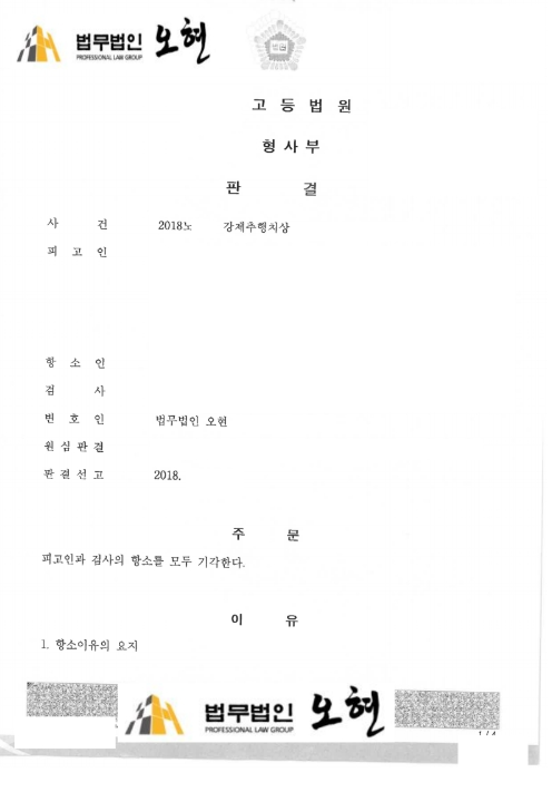 검찰은 이에 항소하였으나 이어진 항소심 재판에서도 본 변호인은 검사 측이 강제추행치상 혐의를 무리하게 이 사건에 억지로 대입하여 주장하고 있다는 점을 강력히 주장하였습니다. 결과적으로 의뢰인 A씨는 항소심에서도 강제추행치상에 대하여 '무죄'를 받을 수 있었으며, 취업제한 및 성범죄자 신상정보공개 처분을 받지 않고 정상적으로 회사에 취직하여 사회인으로 활동할 수 있었습니다.