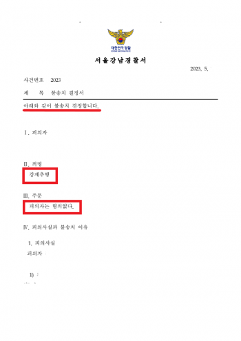 서울강남경찰서는 이 사건에 대해 다음과 같은 사유로 불송치 결정을 하였습니다.